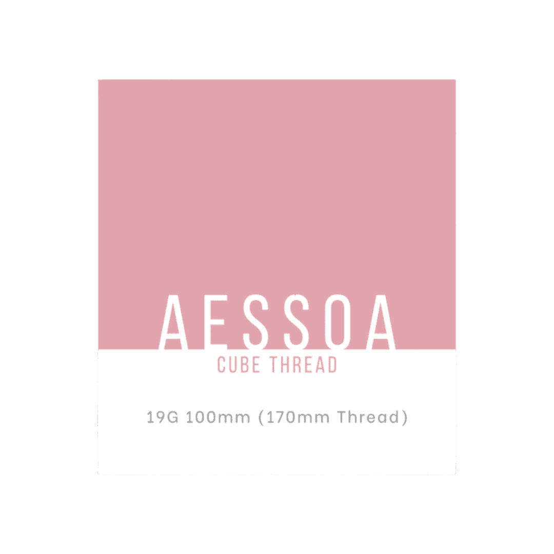 Aessoa Cube Thread 19G 100mm (170mm Thread) is a PDO (Cog type) thread designed to be used across different areas of the face and neck. PDO (polydioxanone) is a bioabsorbable structure which is absorbed after promoting collagen by stimulating fibroblasts in the skin. Results are immediate and can be seen for 6 to 8 months.