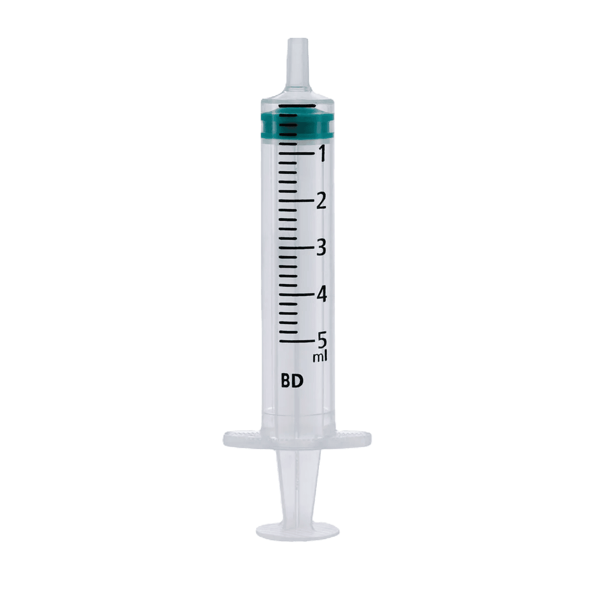 B-D Emerald Syringes 5ml in a pack of 100 suitable for the attachment of different needles.