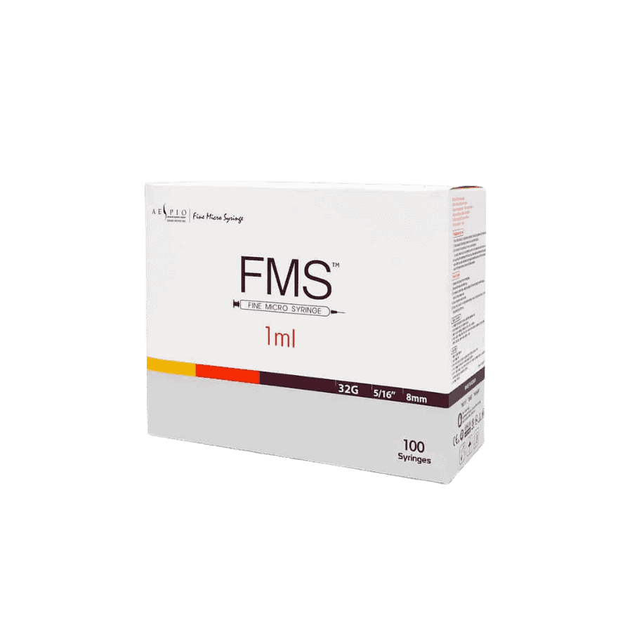 FMS Micro Syringe 32G 1ml have an exceptionally thin walled needle providing an effective solution for the injection of Insulin, Hyaluronic Acid, Platelet Rich Plasma (PRP), Toxins and more.