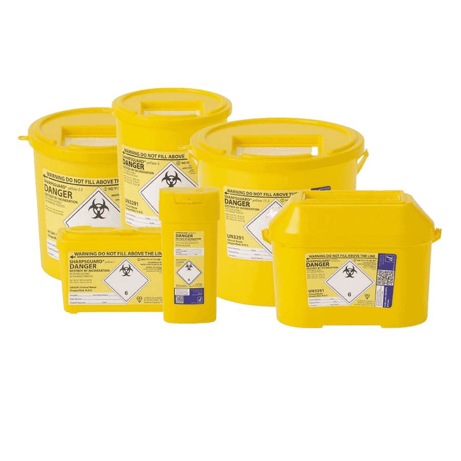 • Complies with HTM 07-01: Safe Management of Healthcare Waste, and current NHS ‘point of use’ disposal guidelines