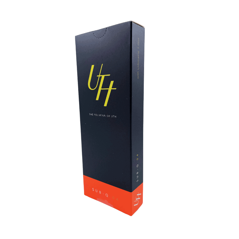 UTH Sub-Q with lidocaine has the thickest properties, designed for tissue augmentation, volume and facial contouring.